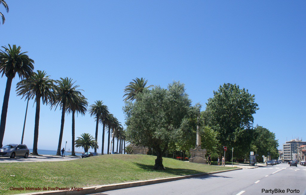 Começamos o nosso percurso de bicicleta em frente ao Mercado da Foz , divertimo-nos com a descida até à Av. Brasil que percorremos até virarmos em direcção ao Forte de S. João Baptista que contornamos e seguimos junto ao rio até ao Jardim do Passeio Alegre onde paramos para fotos antes de regressarmos ao ponto de partida pela Av. Brasil e Rua do Padrão.