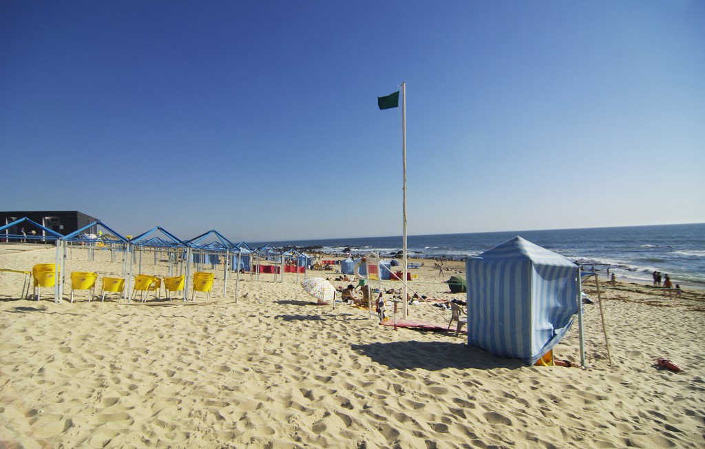 Praia com areal extenso (areia fina e branca)