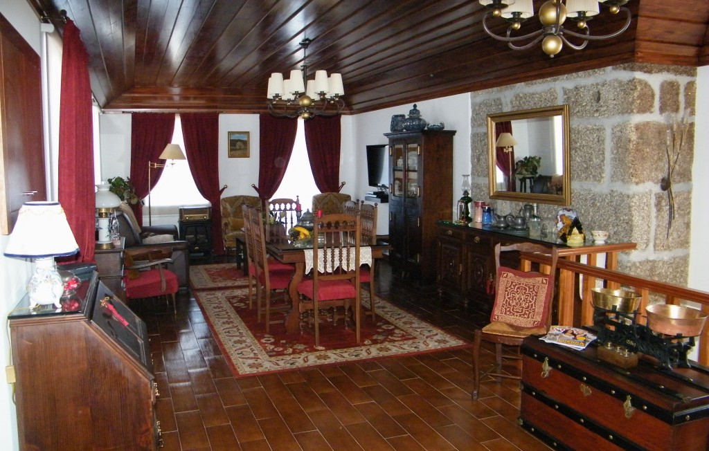 wireless. Sala de estar e jantar, sala de leitura e de jogos. Parque de estacionamento privativo, área ajardinada, piscina, lareira e forno a lenha, churrasqueira, bar no interior de um canastro (espigueiro), baloiço infantil.